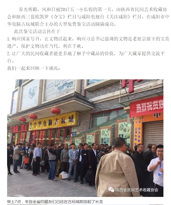 陜西省民間藝術(shù)收藏協(xié)會(huì)咸陽(yáng)大型鑒寶活動(dòng)圓滿成功