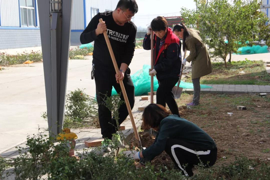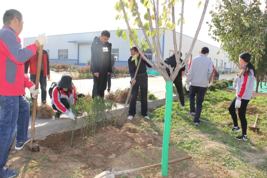在植樹過程中每個(gè)員工個(gè)個(gè)熱情洋溢、干勁十足。大家三五人一組,分工合作,配合默契,有的挖坑、有的種樹苗、有的扶樹、有的培土、有的澆水,每道工序有條不紊,樣樣做得認(rèn)真到位。到處一片熱火朝天的勞動(dòng)場景,時(shí)不時(shí)還能聽到在植樹地點(diǎn)的歡聲笑語。眾人拾材火焰高,經(jīng)過大家一天的奮戰(zhàn),新栽種的綠化苗木在凌云公司廠區(qū)構(gòu)成了一道靚麗風(fēng)景線,每個(gè)人都積極參與其中,為“綠化環(huán)境,美化凌云”盡自己的一份力!